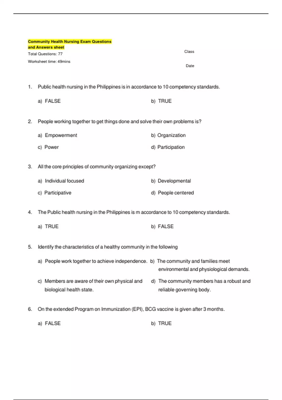 a) Nursing b) Community Health Nursing