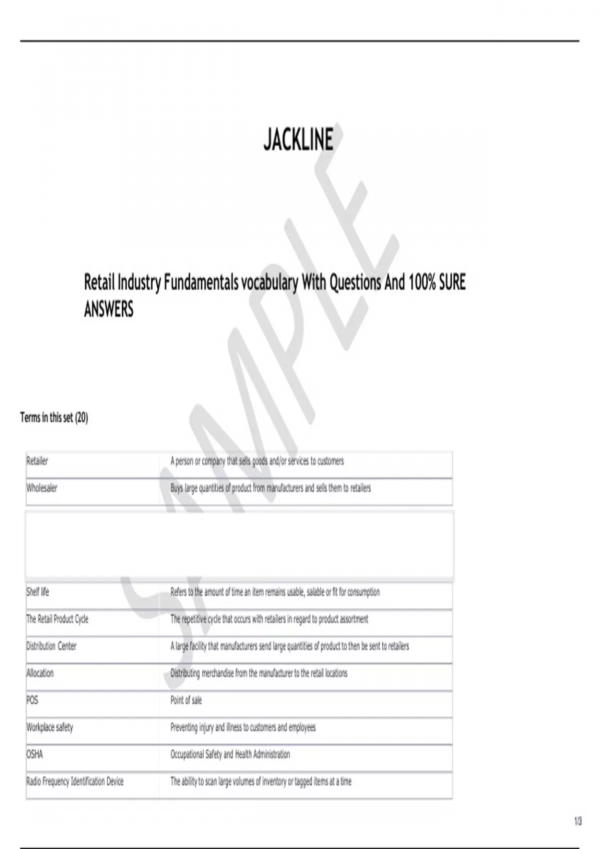 Retail Industry Fundamentals vocabulary With Questions And 100% SURE