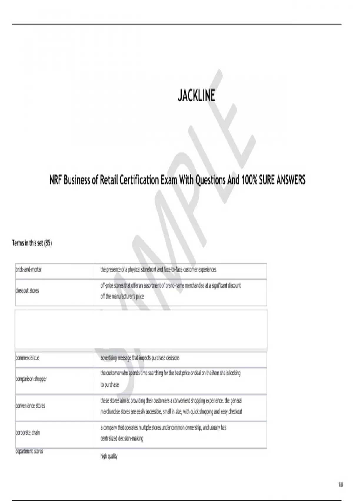 NRF Business of Retail Certification Exam With Questions And 100% SURE ANSWERS