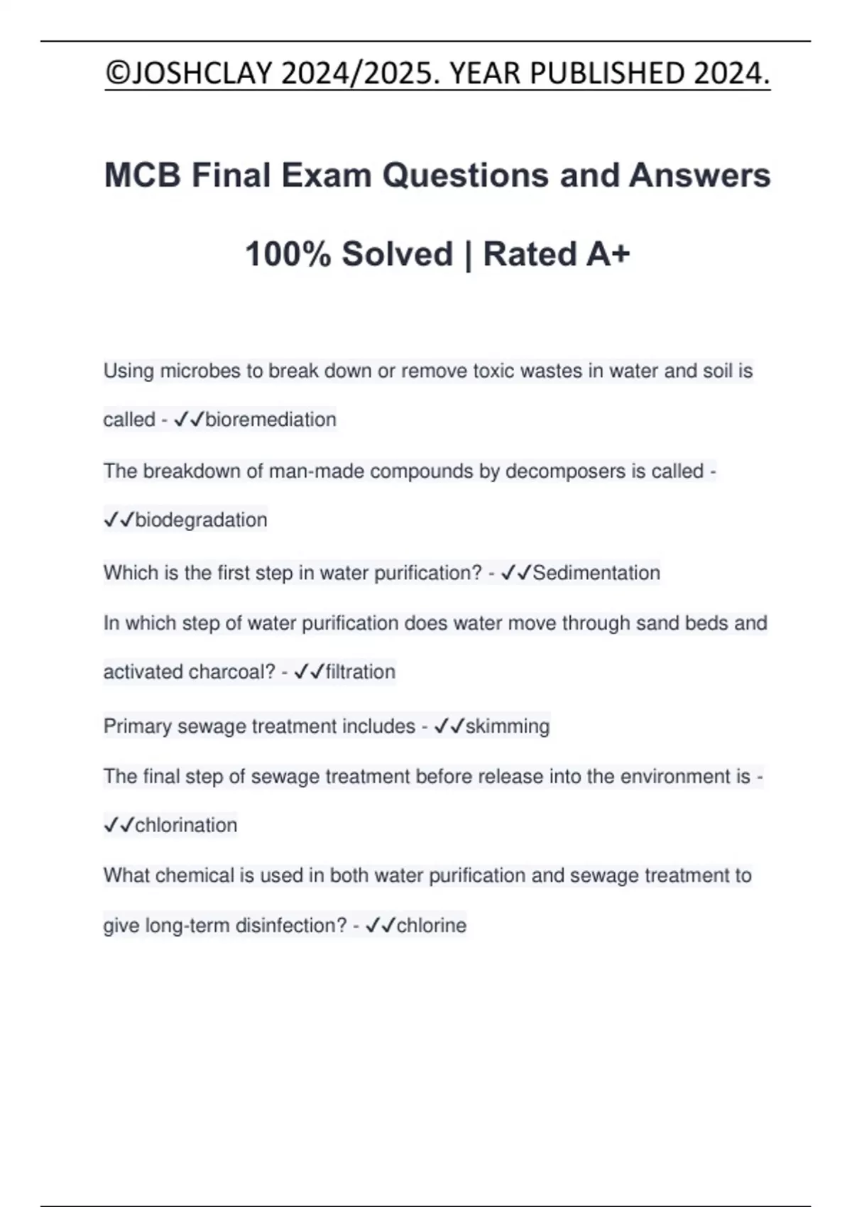 The primary phase of wastewater treatment is largely - ✔✔physical