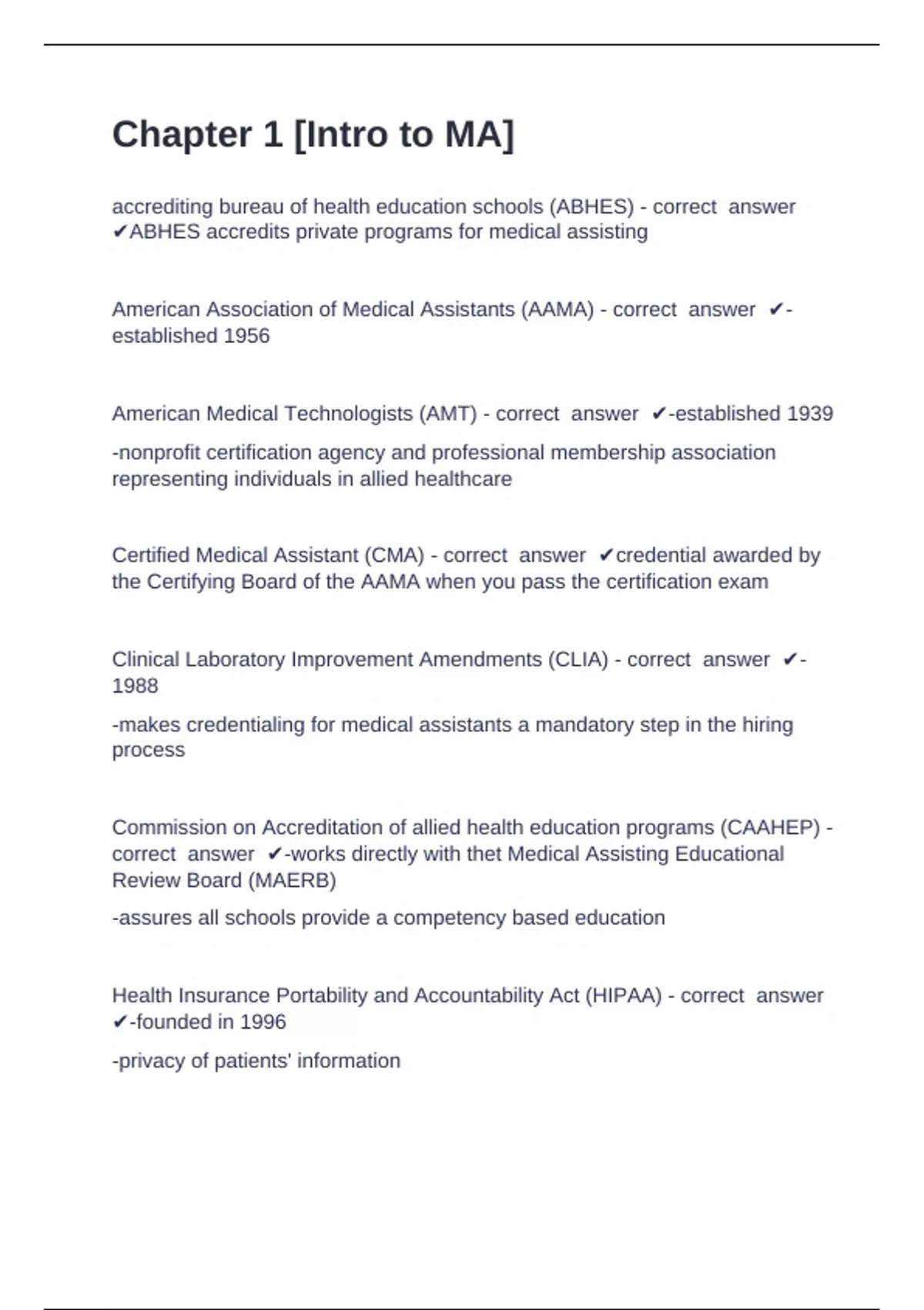 Certified Medical Assistant (CMA) - correct answer ✔credential awarded by