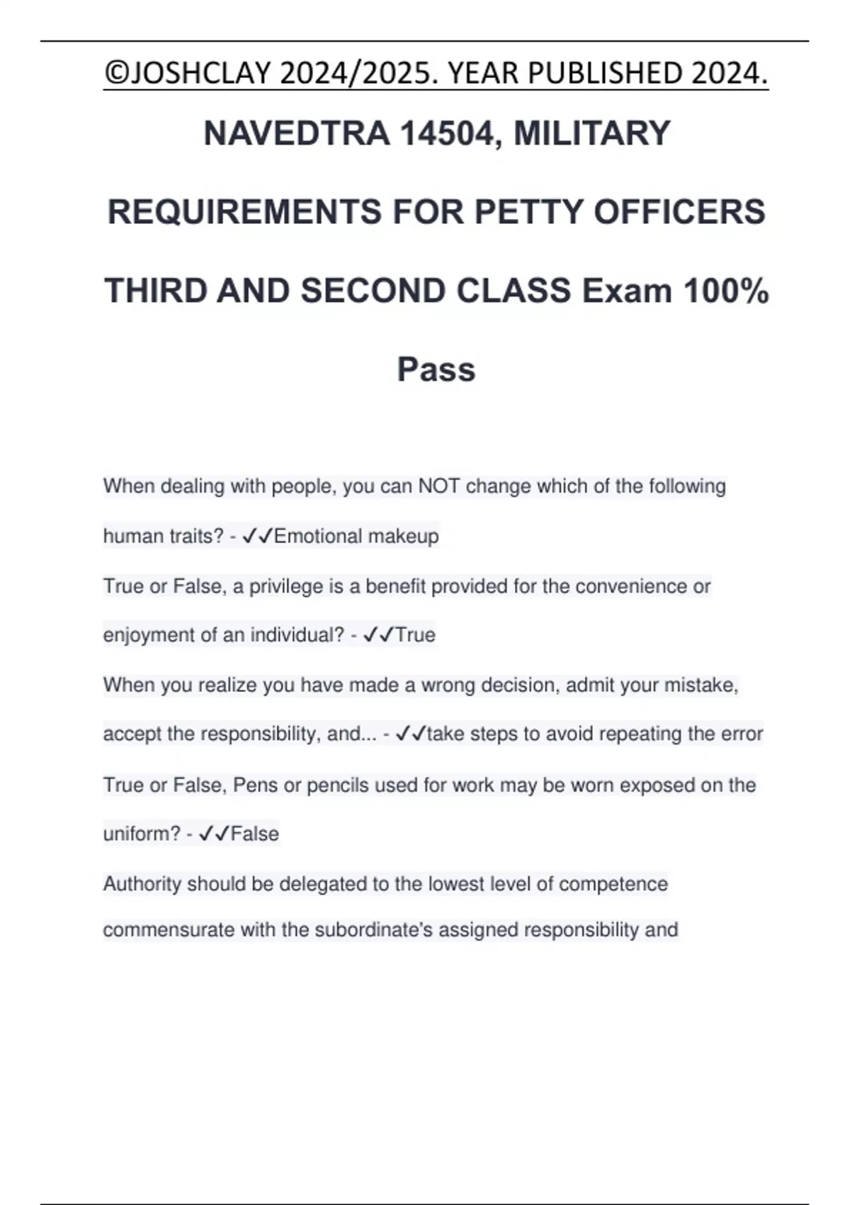 NAVEDTRA 14504, MILITARY
