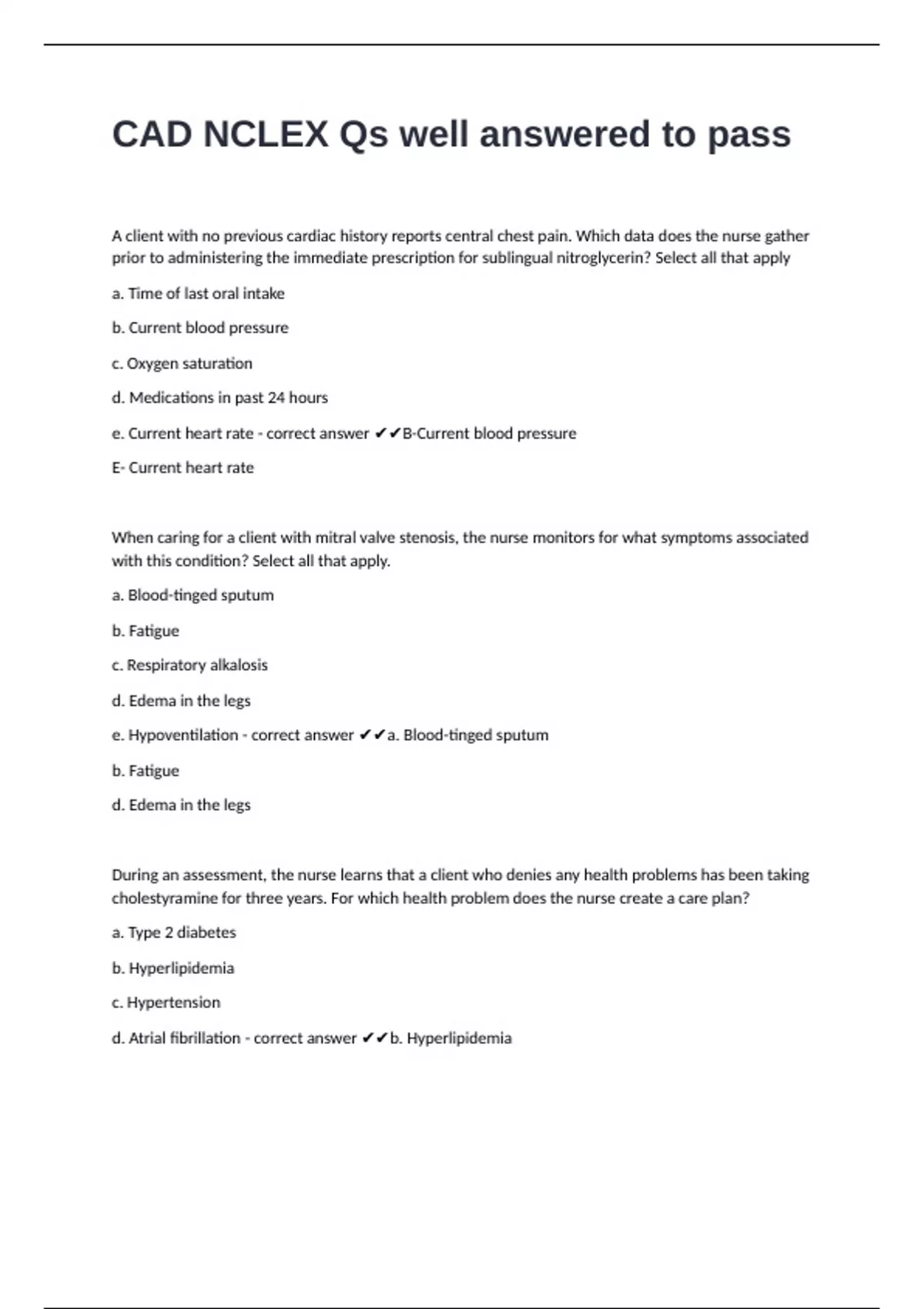 d. Atrial fibrillation - correct answer ✔✔b. Hyperlipidemia