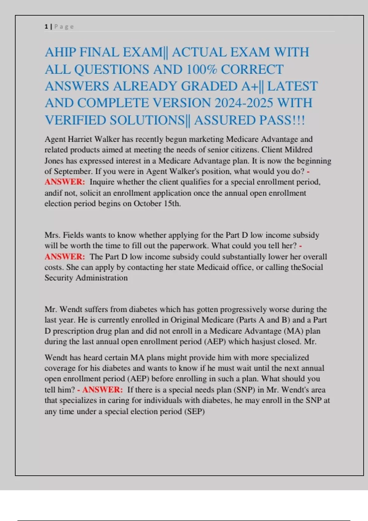 AHIP FINAL EXAM|| ACTUAL EXAM WITH