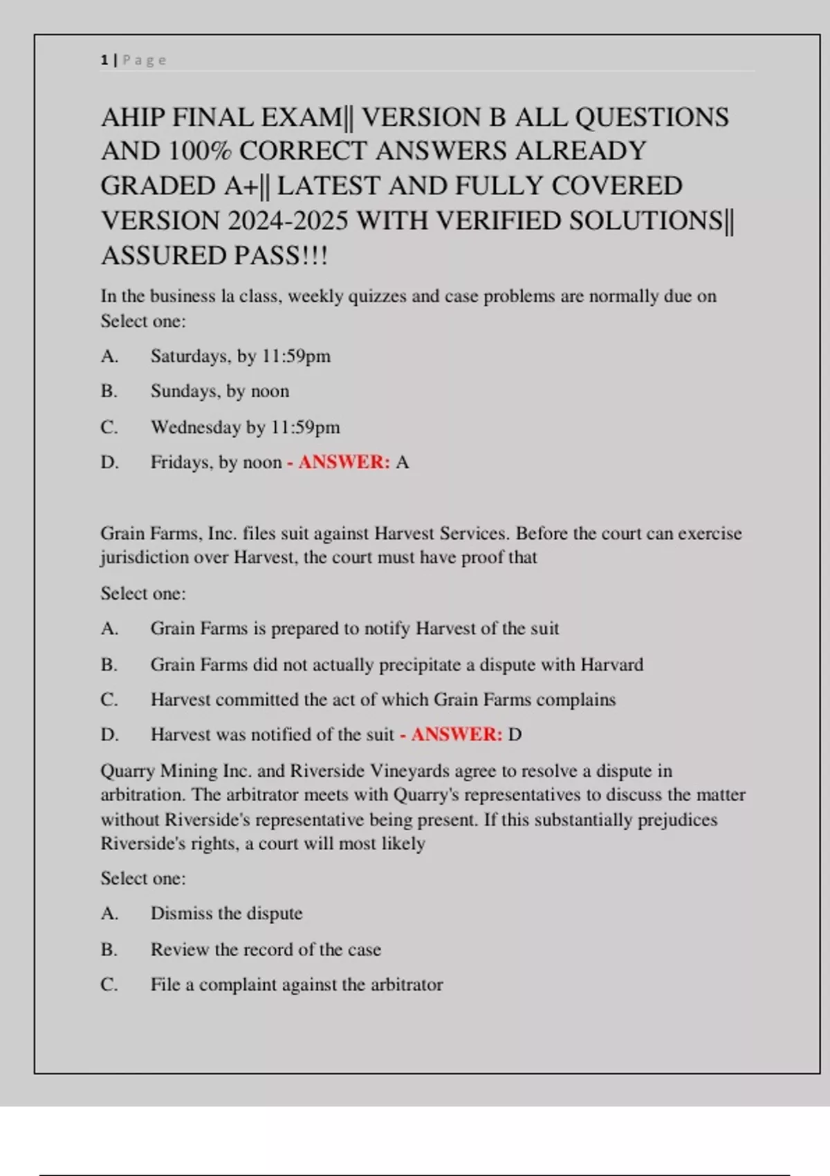 AHIP FINAL EXAM|| VERSION B ALL QUESTIONS