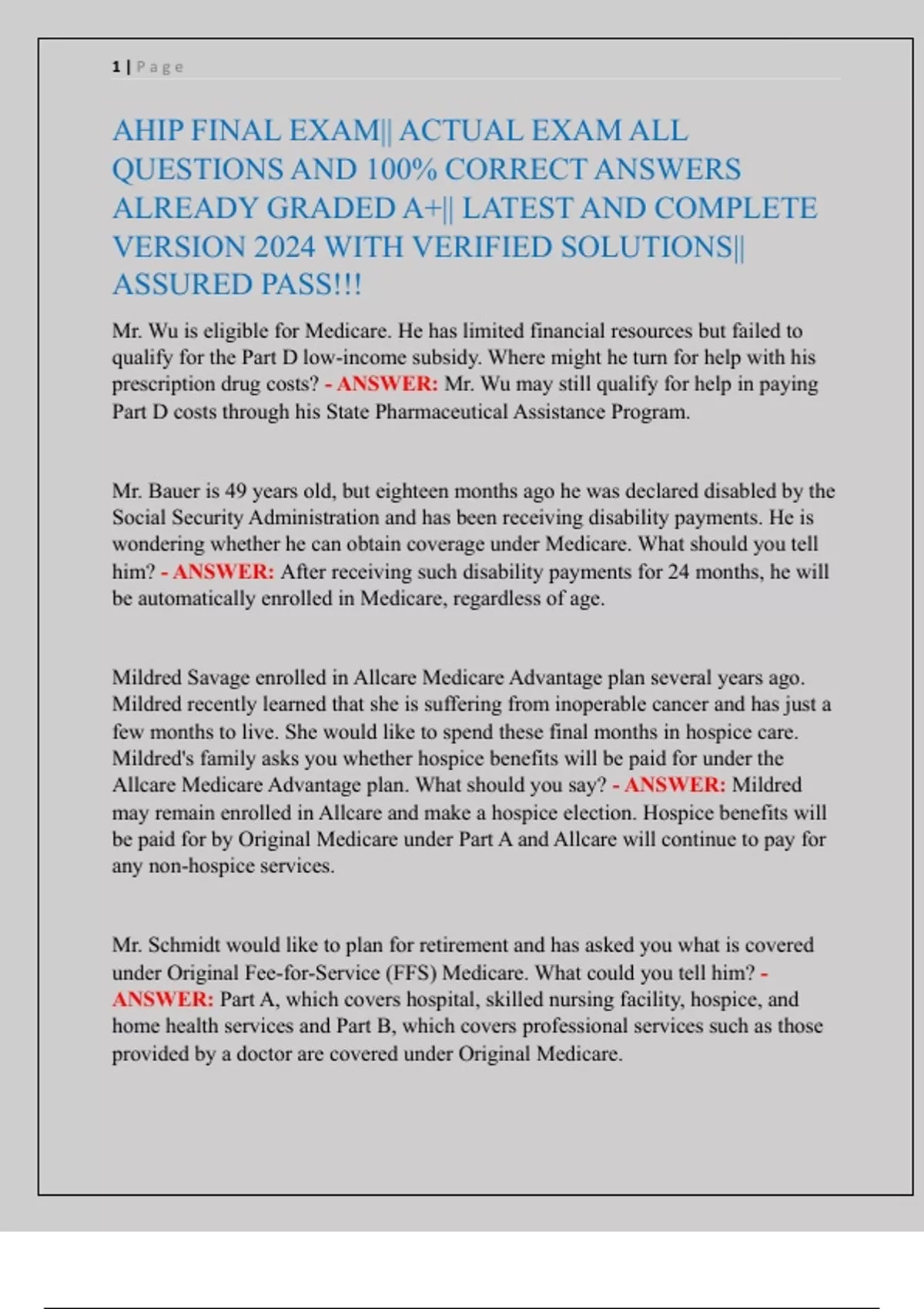 AHIP FINAL EXAM|| ACTUAL EXAM ALL