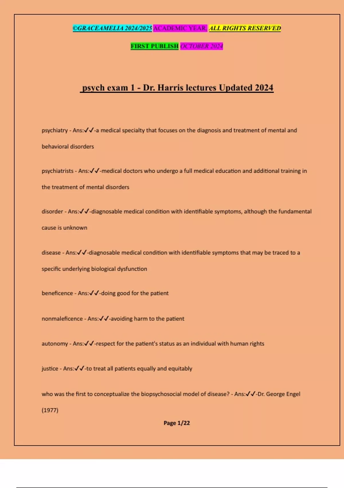 psych exam 1 - Dr. Harris lectures Updated 2024
