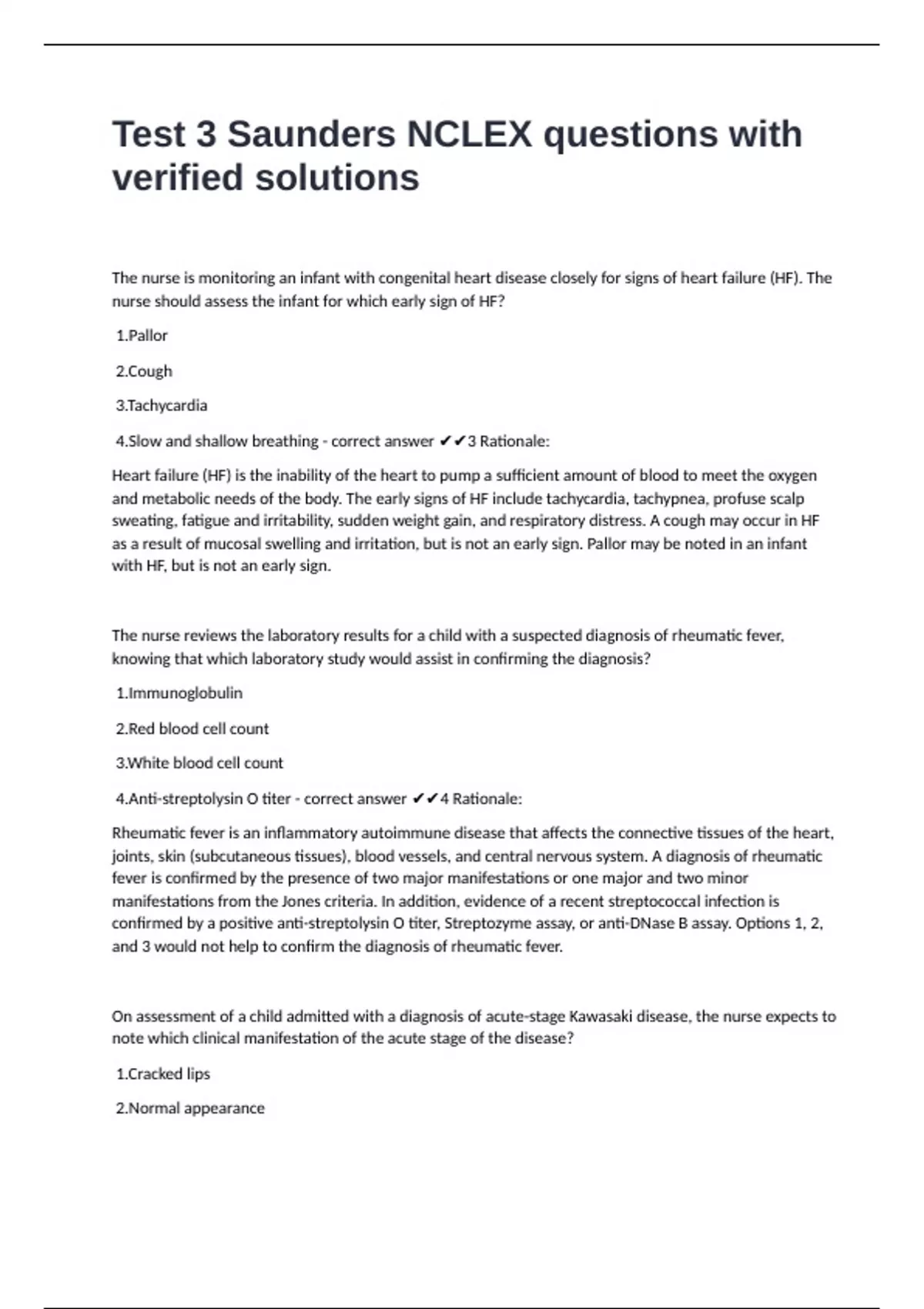4.Anti-streptolysin O titer - correct answer ✔✔4 Rationale: