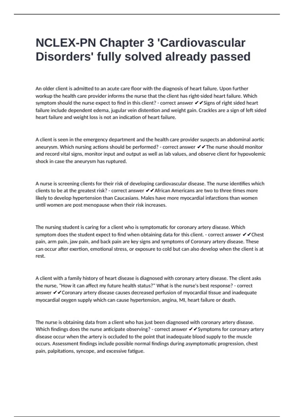disease? - correct answer ✔✔Enhancing myocardial oxygenation is always the priority when a client