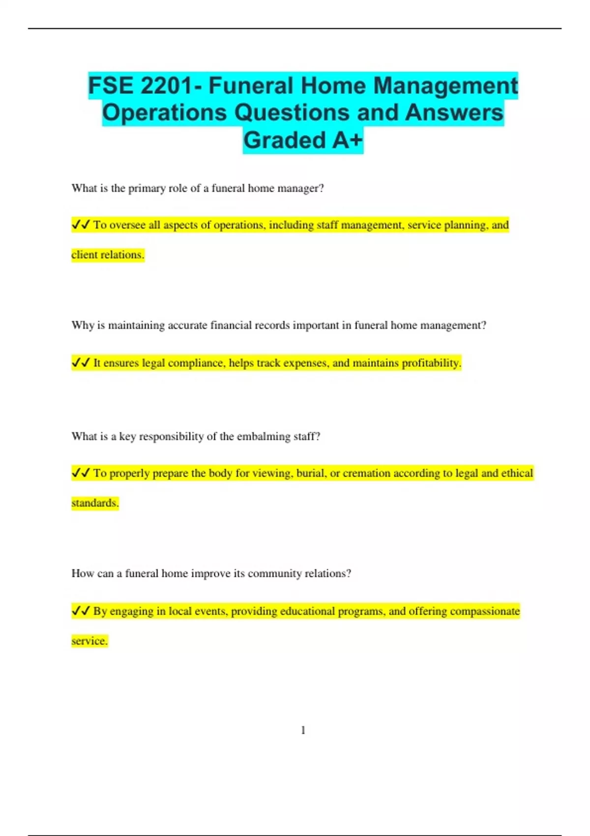 ✔✔ Ensuring that all employees understand funeral procedures and provide excellent customer