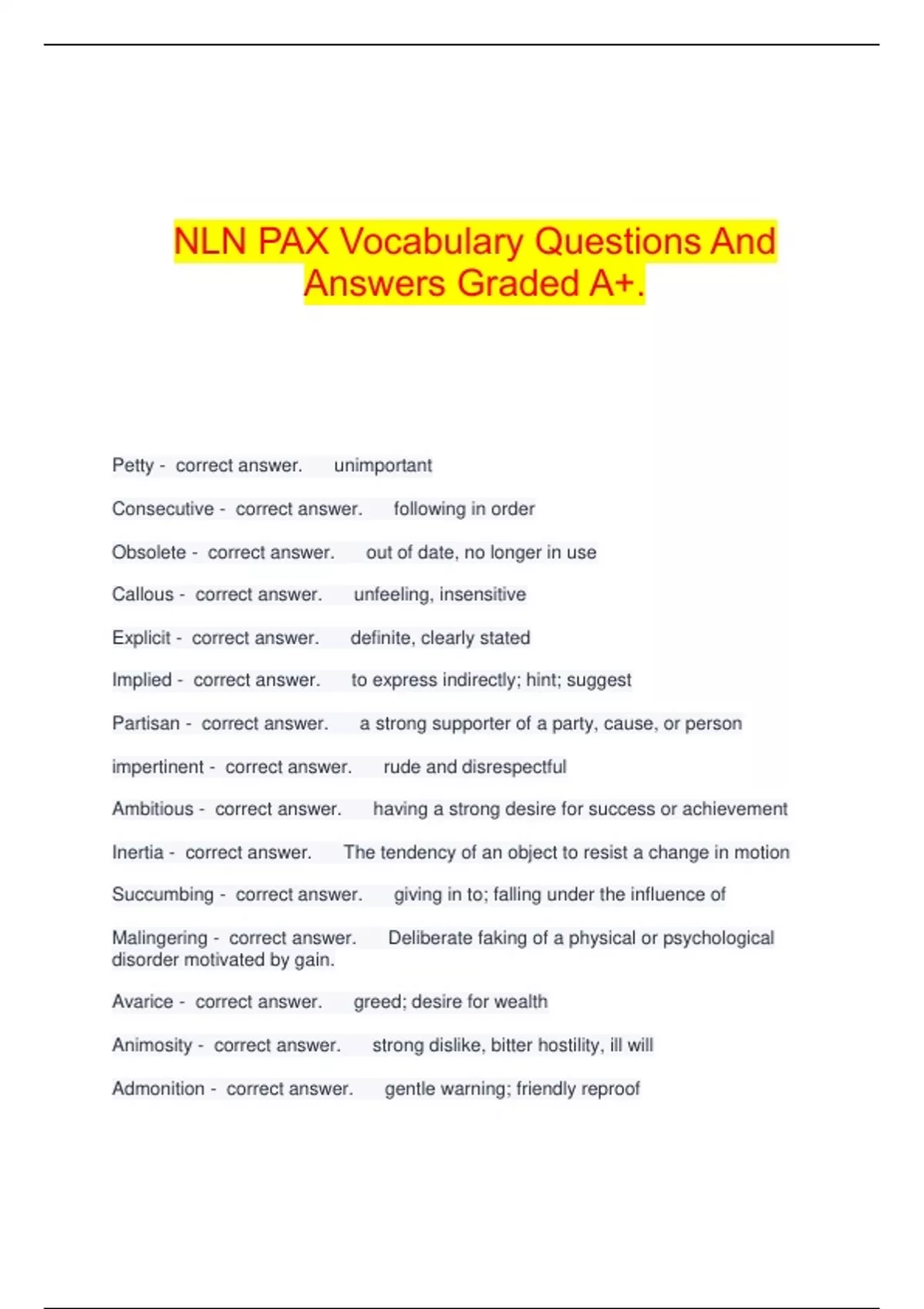 Precise - correct answer. exact; accurate