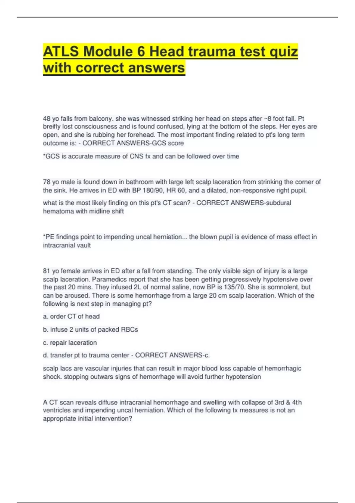 d. transfer pt to trauma center - CORRECT ANSWERS-c.