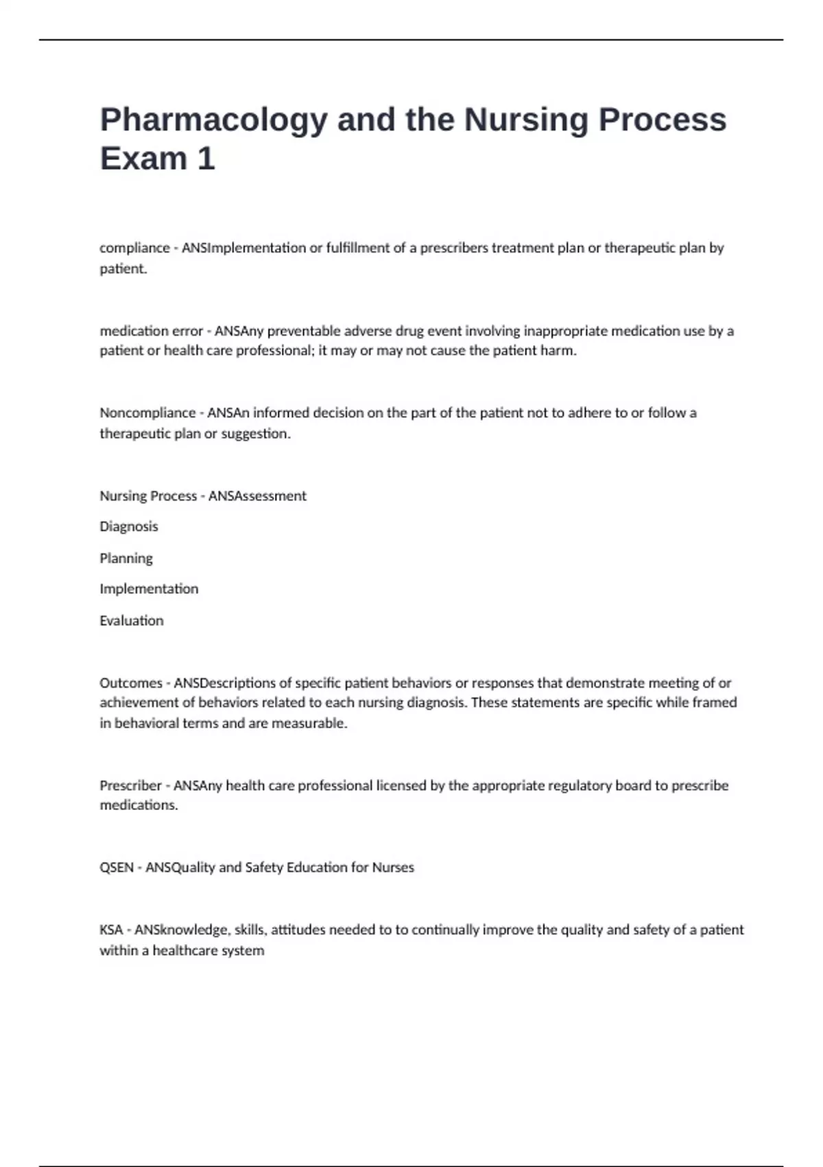 Pharmacology and The Nursing Process Exam 1 Questions and Answers 2024/2025 Latest Edition.(COMPLETELY CORRECT QUESTIONS AND ANSWERS 2024/2025)