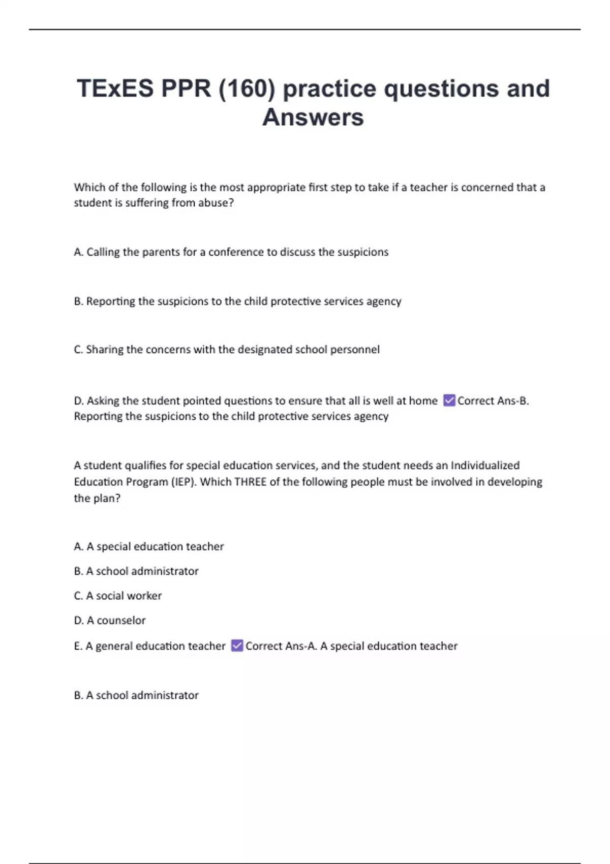 E. A general education teacher Correct Ans-A. A special education teacher