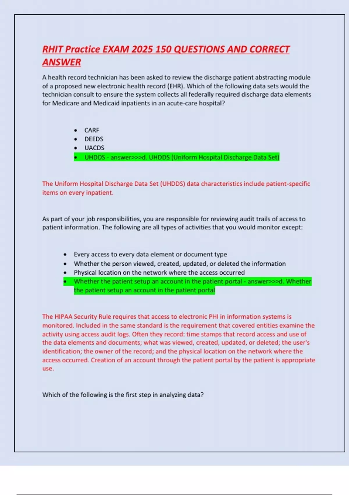 RHIT Practice EXAM 2025 150 QUESTIONS AND CORRECT