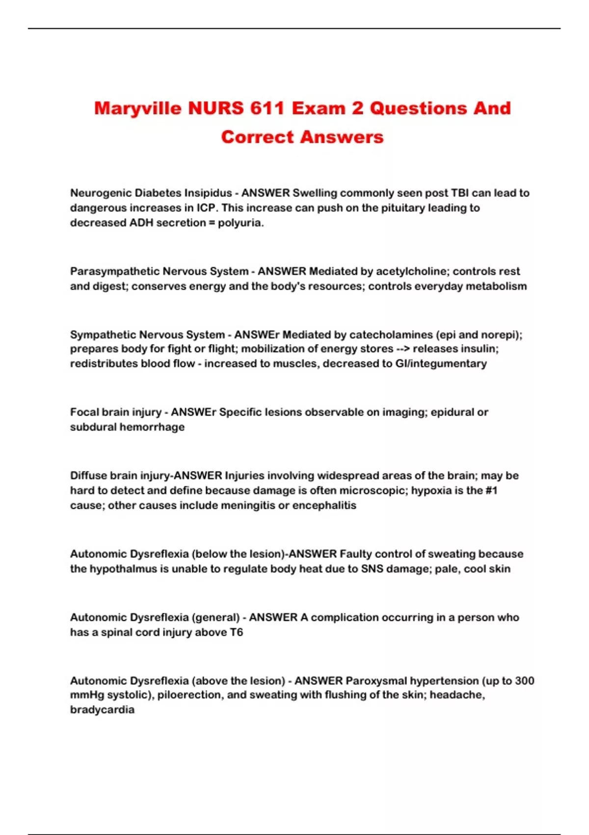 Maryville NURS 611 Exam 2 Questions And Correct Answers...