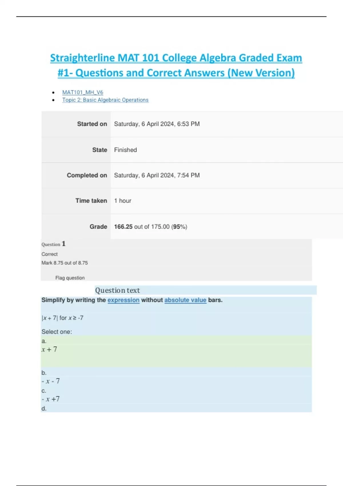 Grade 166.25 out of 175.00 (95%)