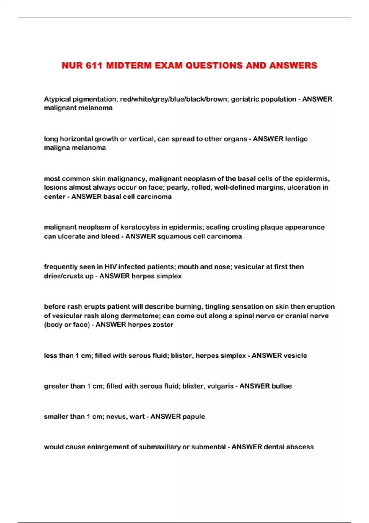 NUR 611 MIDTERM EXAM QUESTIONS AND ANSWERS...
