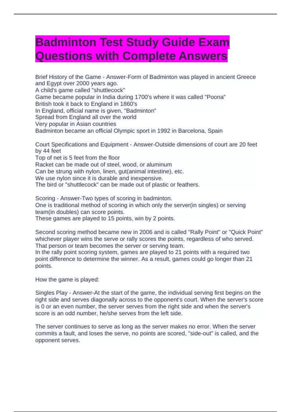 Brief History of the Game - Answer-Form of Badminton was played in ancient Greece