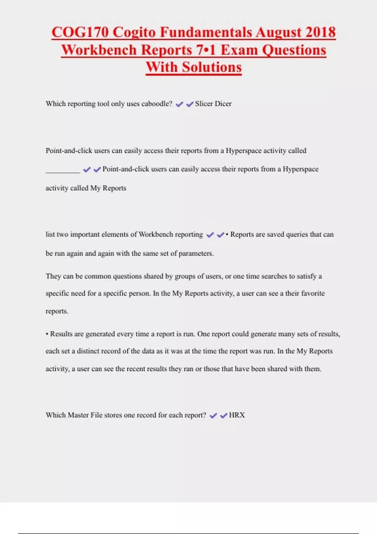 Workbench Reports 7•1 Exam Questions