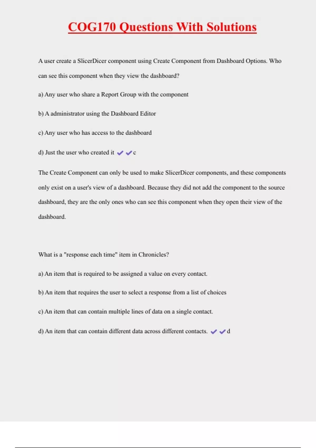 , COG170 Questions With Solutions