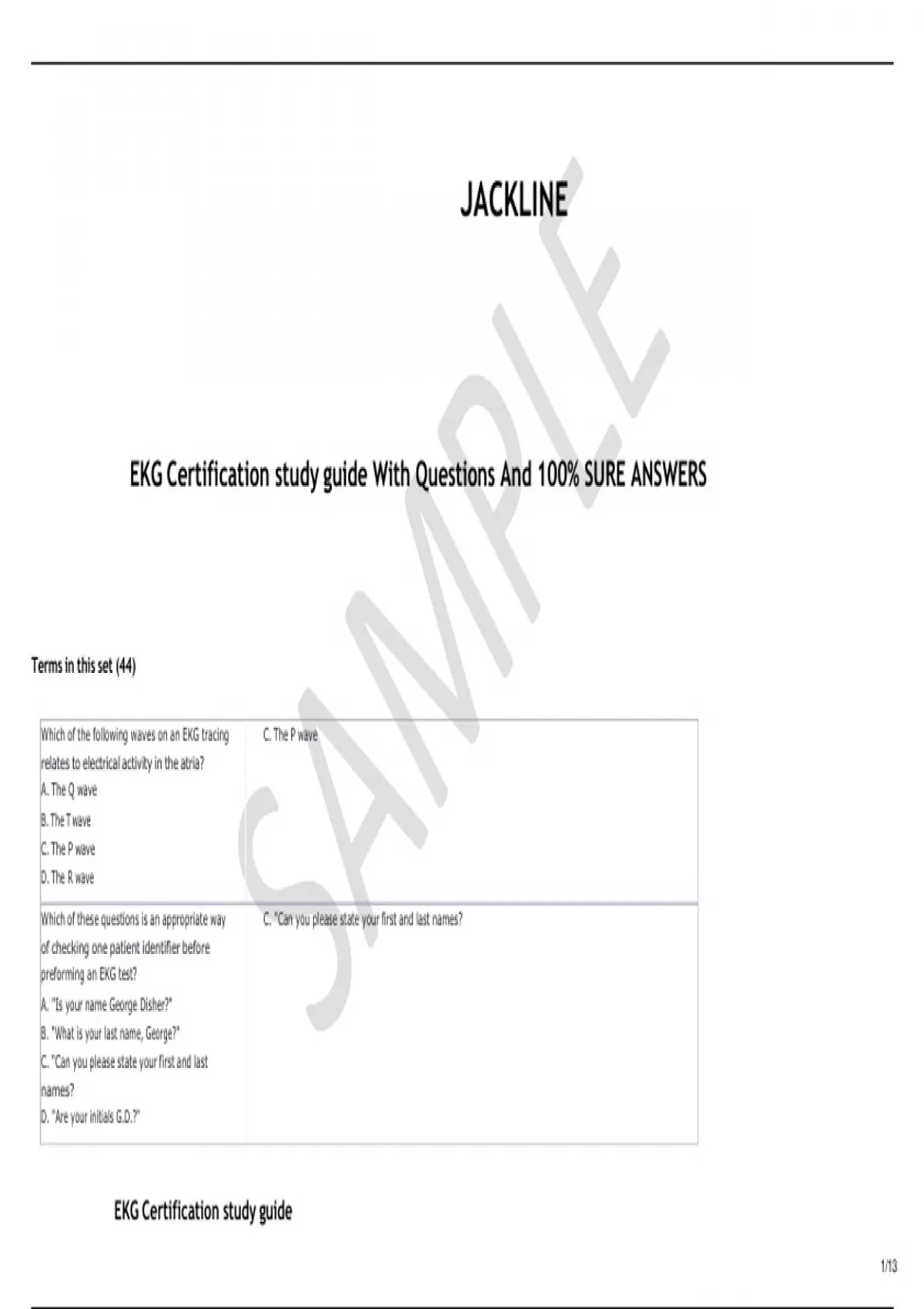 EKG Certification study guide With Questions And 100% SURE ANSWERS