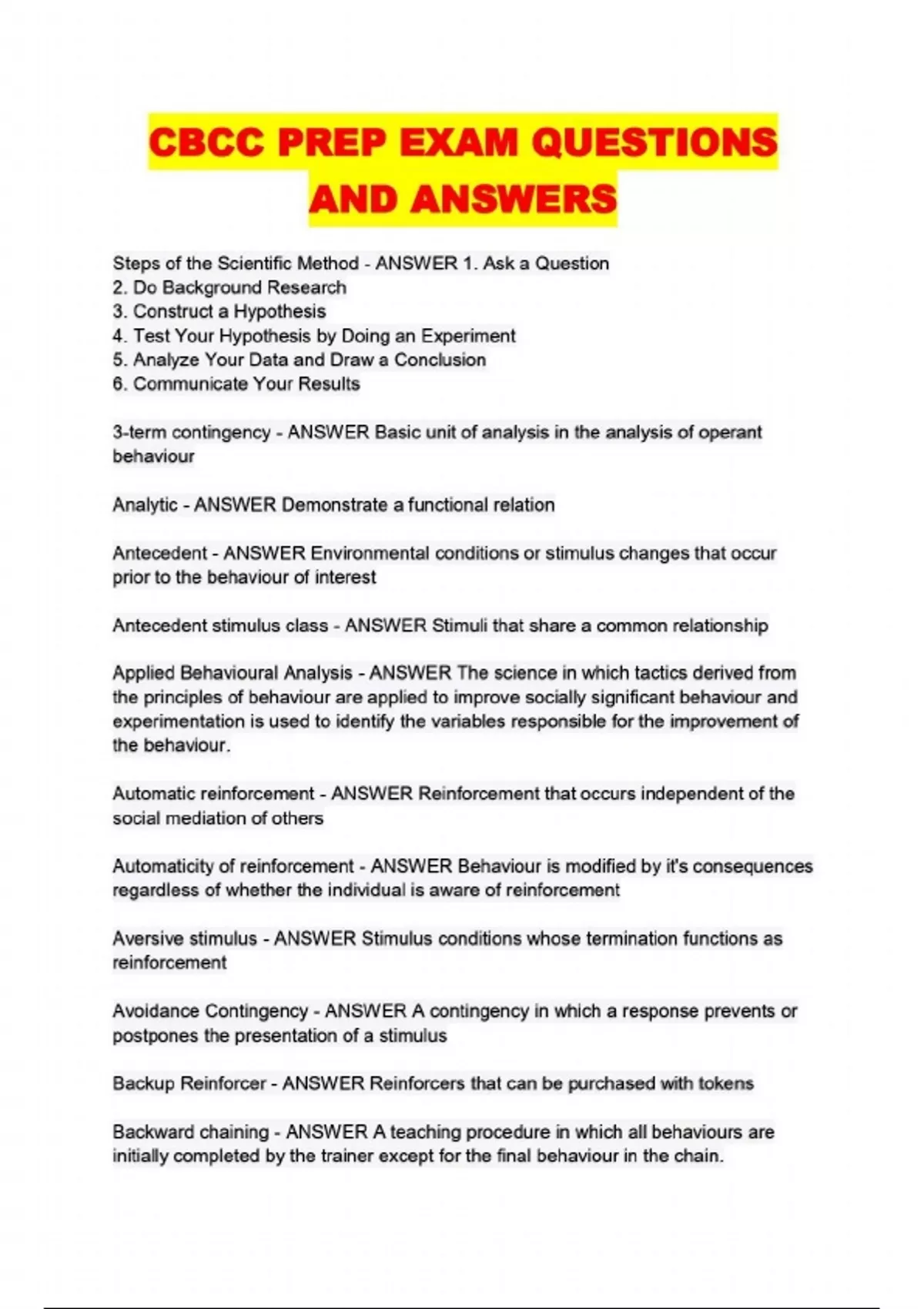 CBCC PREP EXAM QUESTIONS AND ANSWERS...