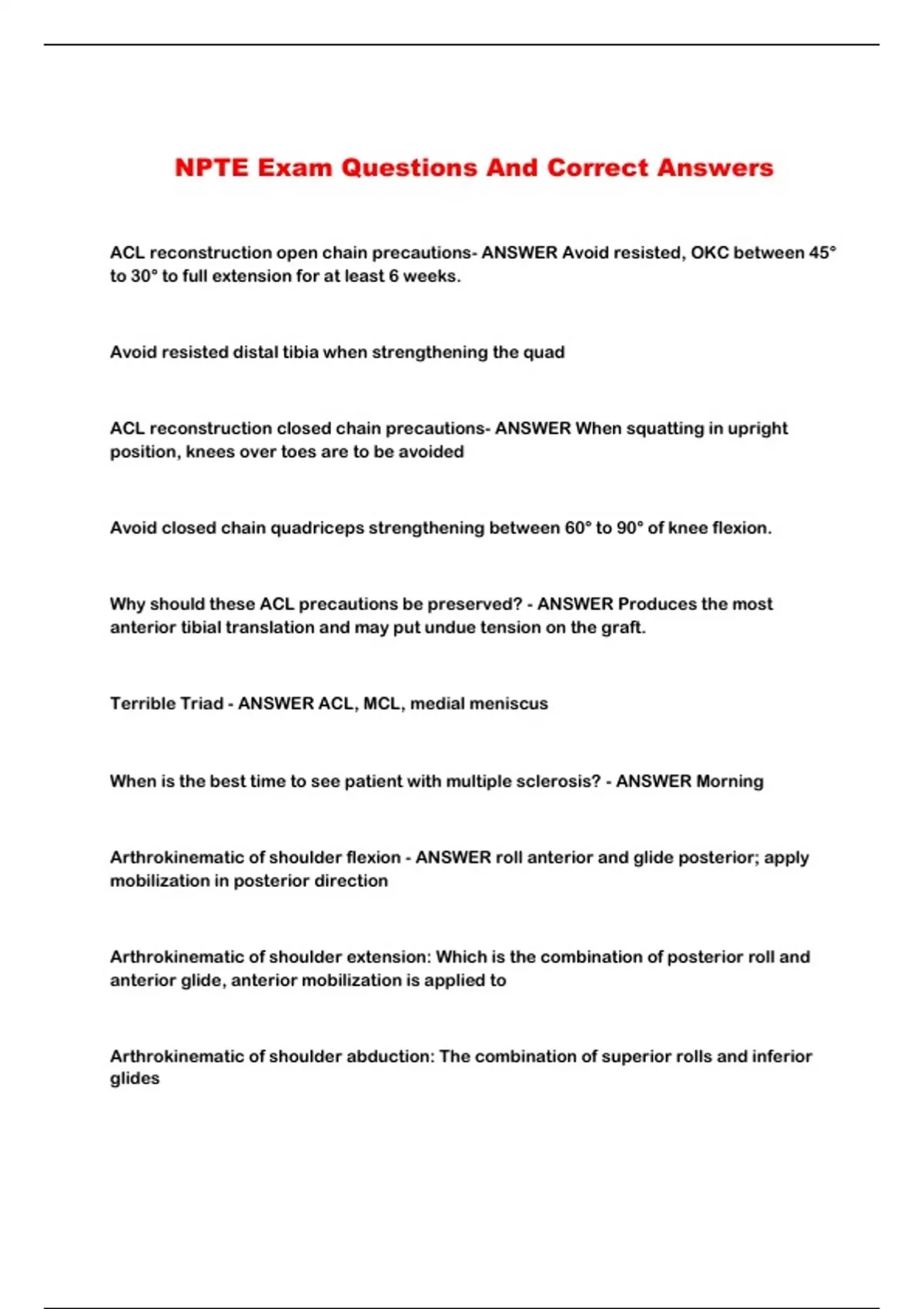 NPTE Exam Questions And Correct Answers