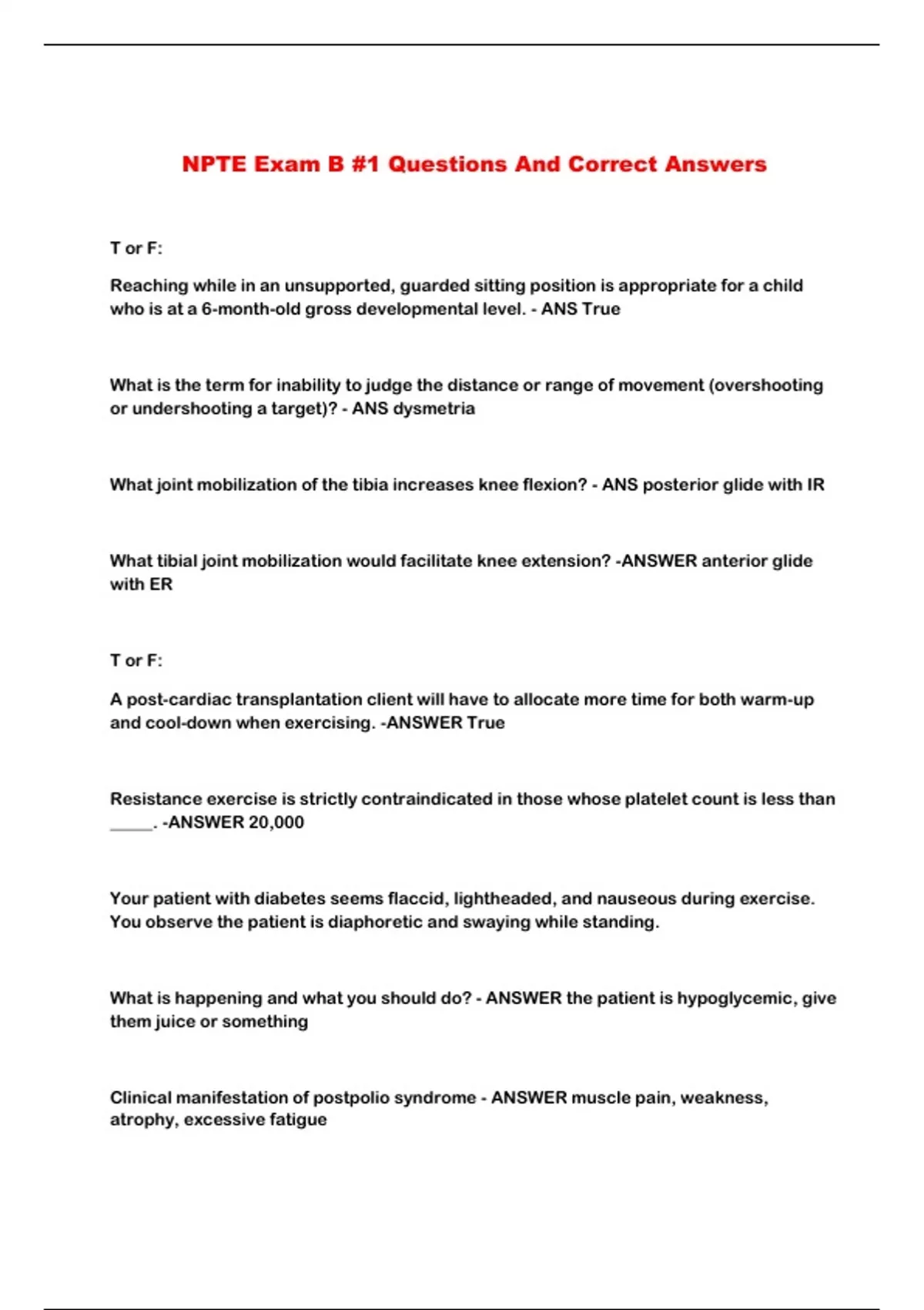 NPTE Exam B #1 Questions And Correct Answers