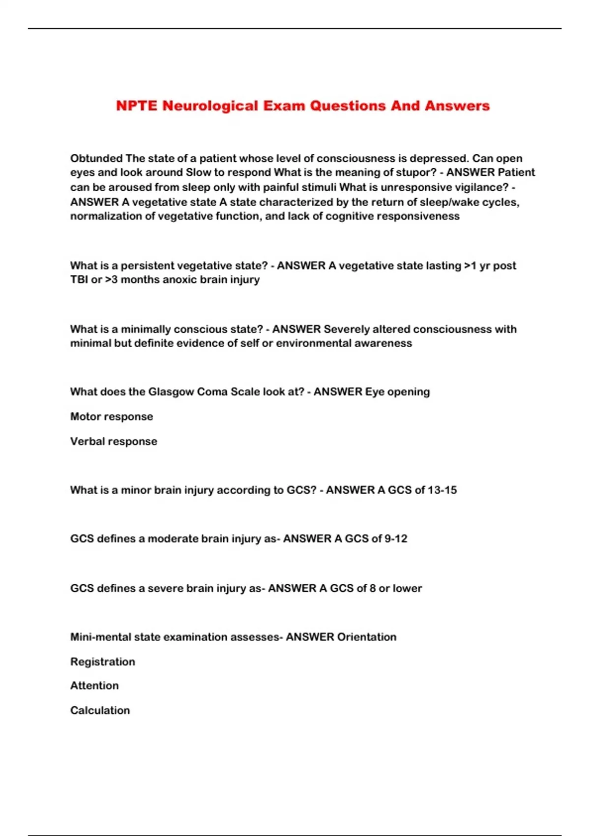 NPTE Neurological Exam Questions And Answers