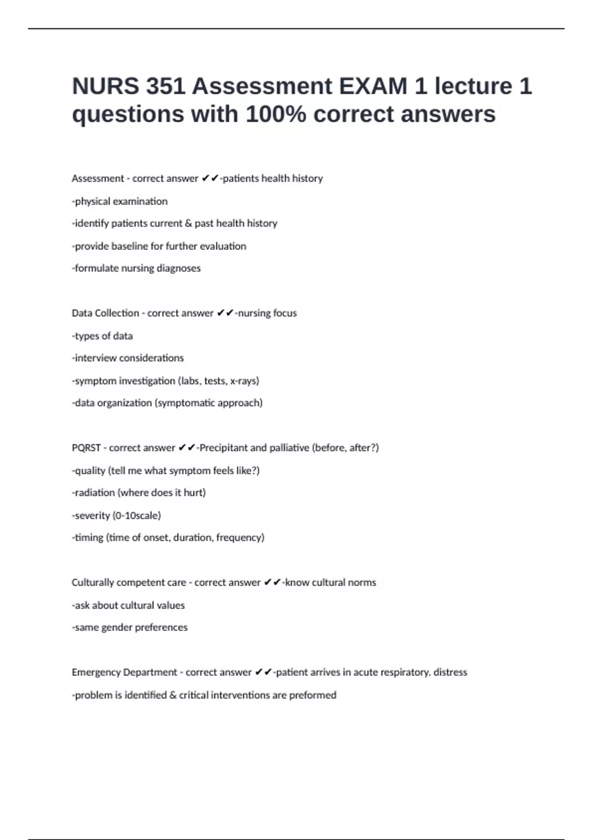 PQRST - correct answer ✔✔-Precipitant and palliative (before, after?)