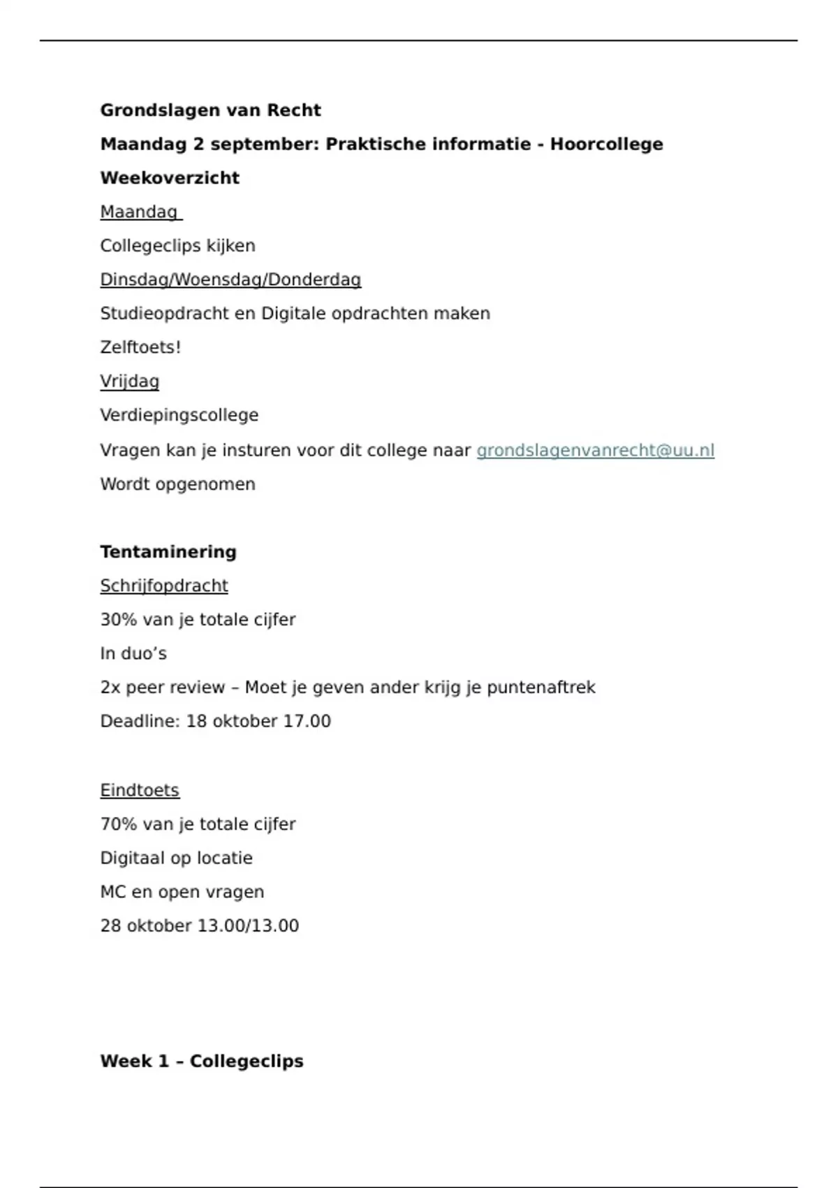 Maandag 2 september: Praktische informatie - Hoorcollege