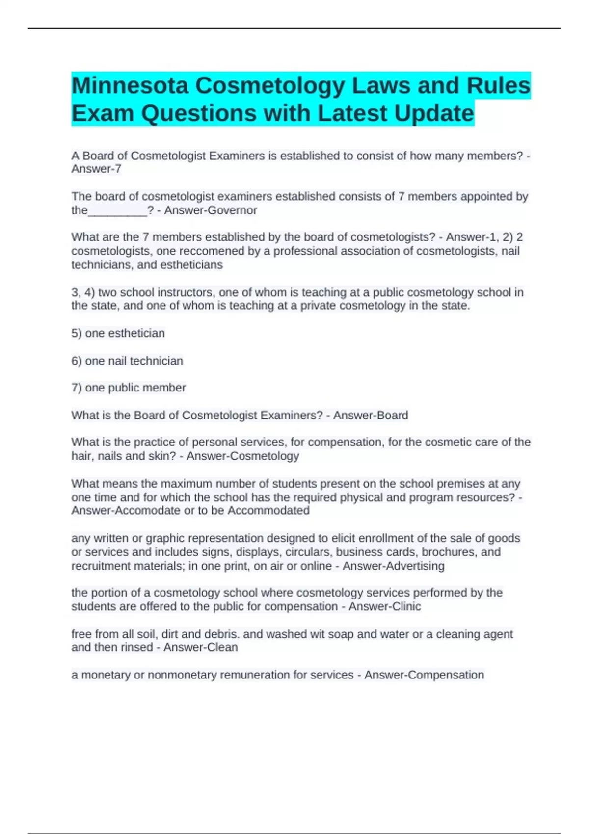 Minnesota Cosmetology Laws and Rules Exam Questions with Latest Update