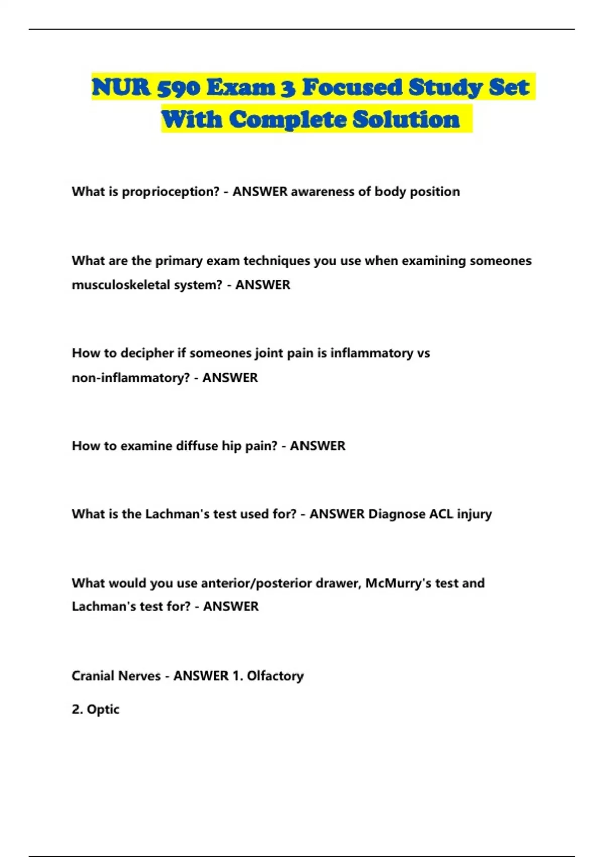 What is the Lachman's test used for? - ANSWER Diagnose ACL injury