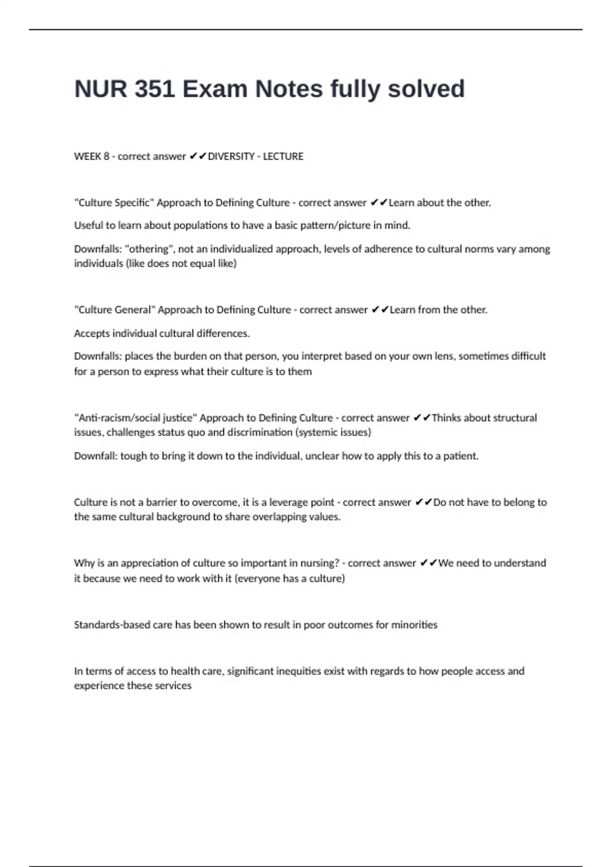 WEEK 8 - correct answer ✔✔DIVERSITY - LECTURE