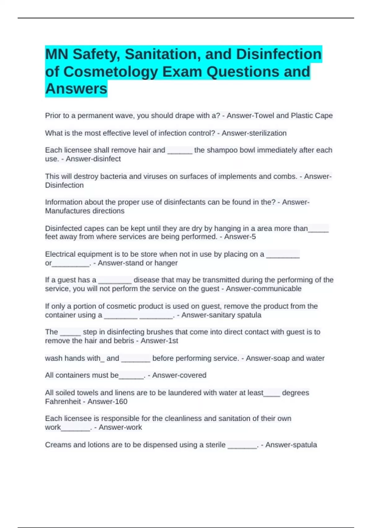 of Cosmetology Exam Questions and