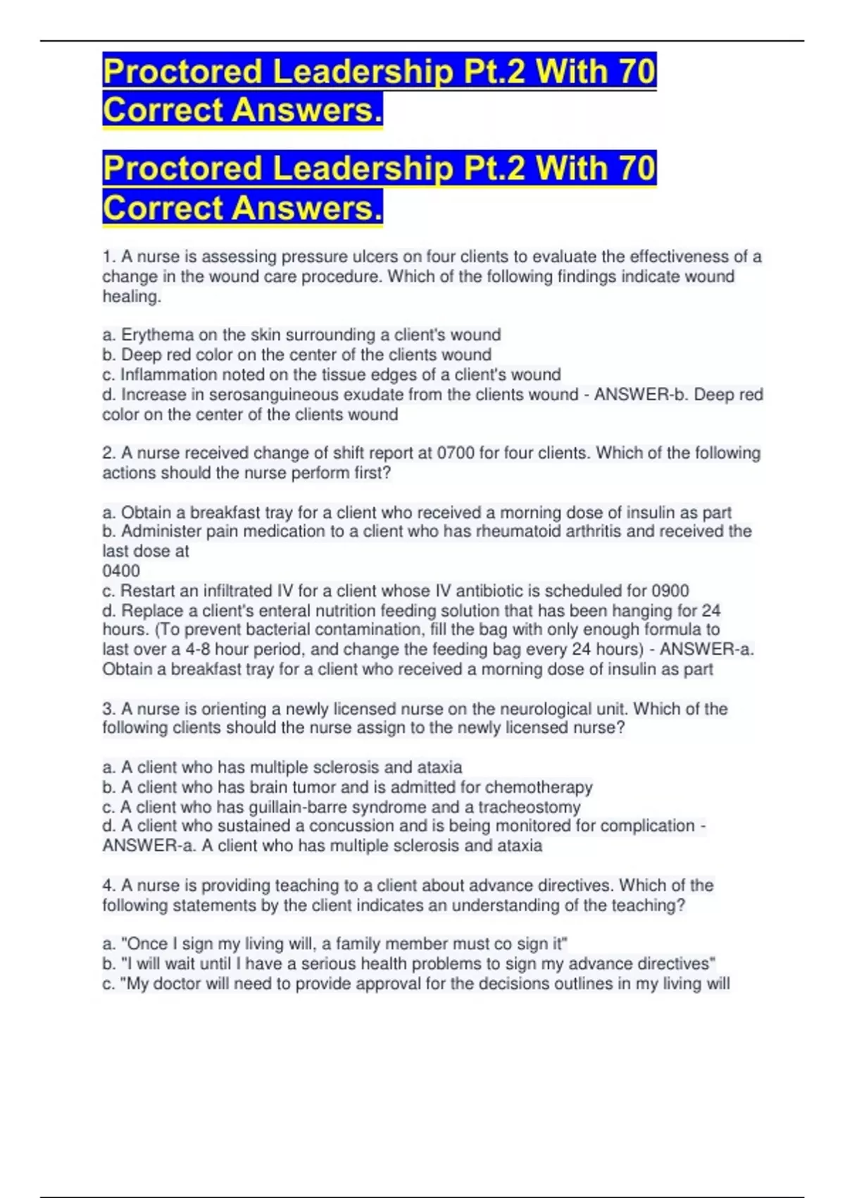 Proctored Leadership Pt.2 With 70 Correct Answers.