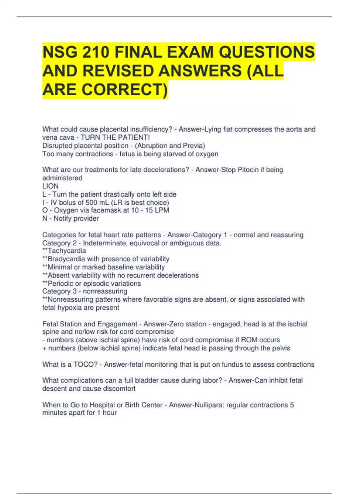 What are our treatments for late decelerations? - Answer-Stop Pitocin if being