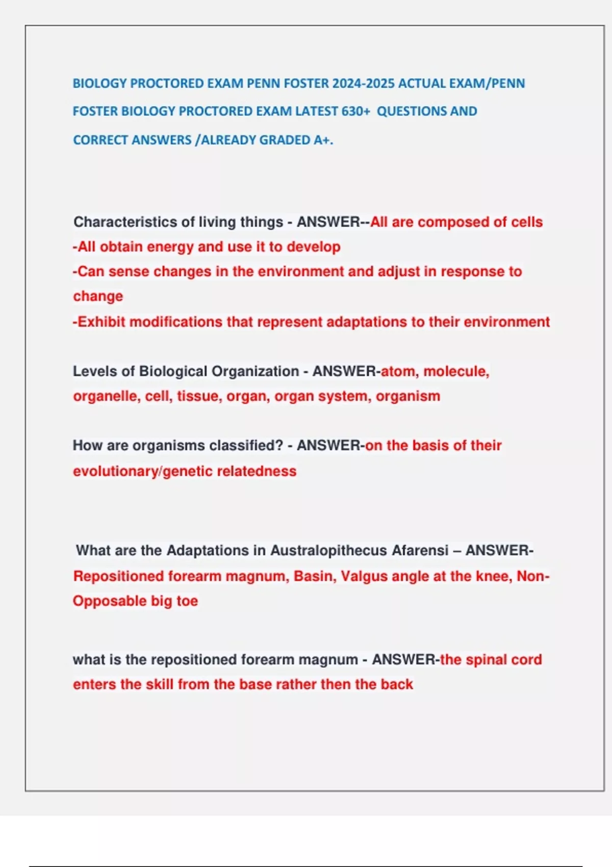 FOSTER BIOLOGY PROCTORED EXAM LATEST 630+ QUESTIONS AND