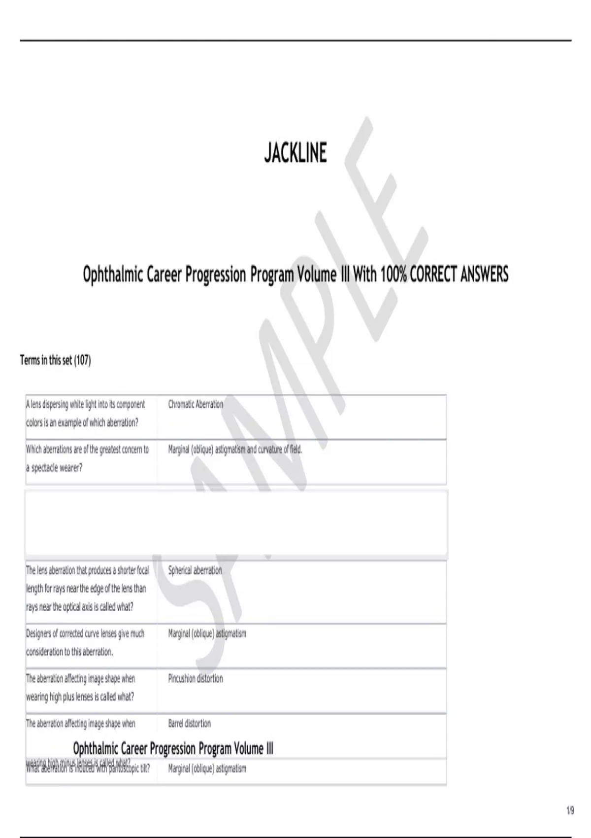 Ophthalmic Career Progression Program Volume III With 100% CORRECT ANSWERS