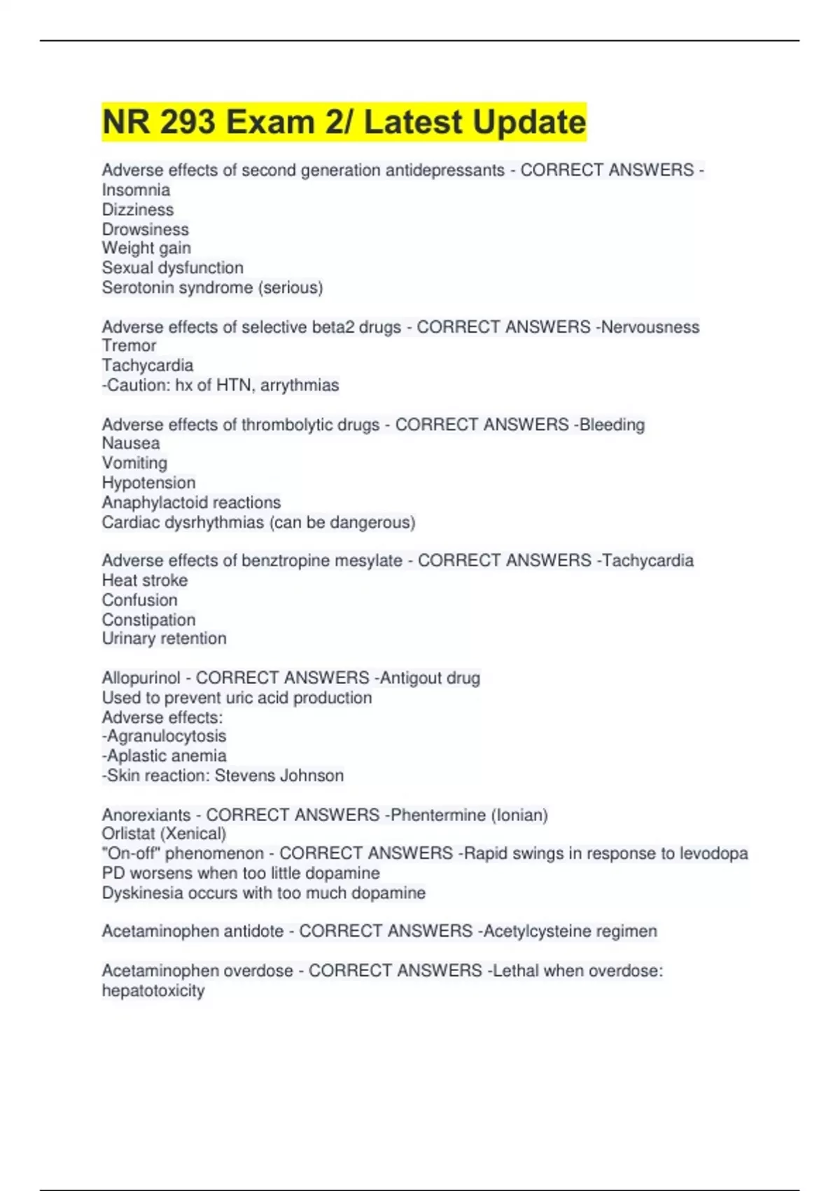 Adverse effects of second generation antidepressants - CORRECT ANSWERS -