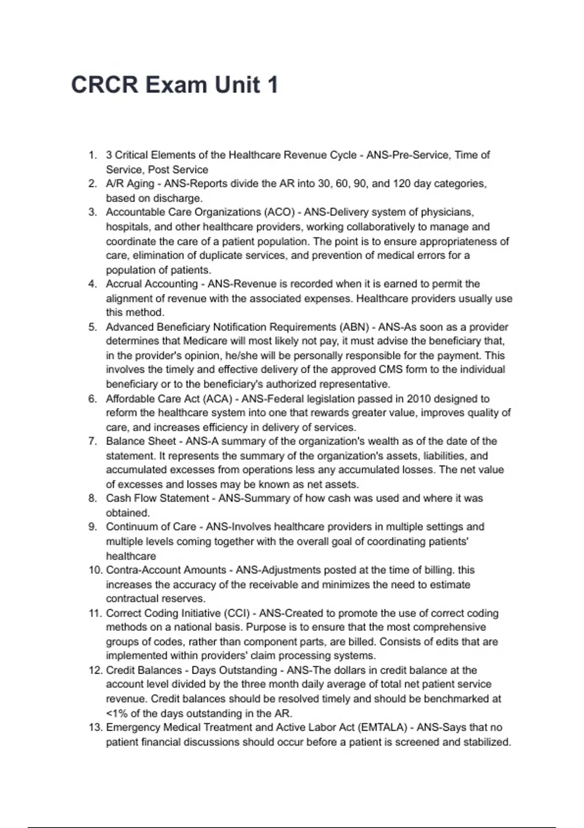 6. Affordable Care Act (ACA) - ANS-Federal legislation passed in 2010 designed to