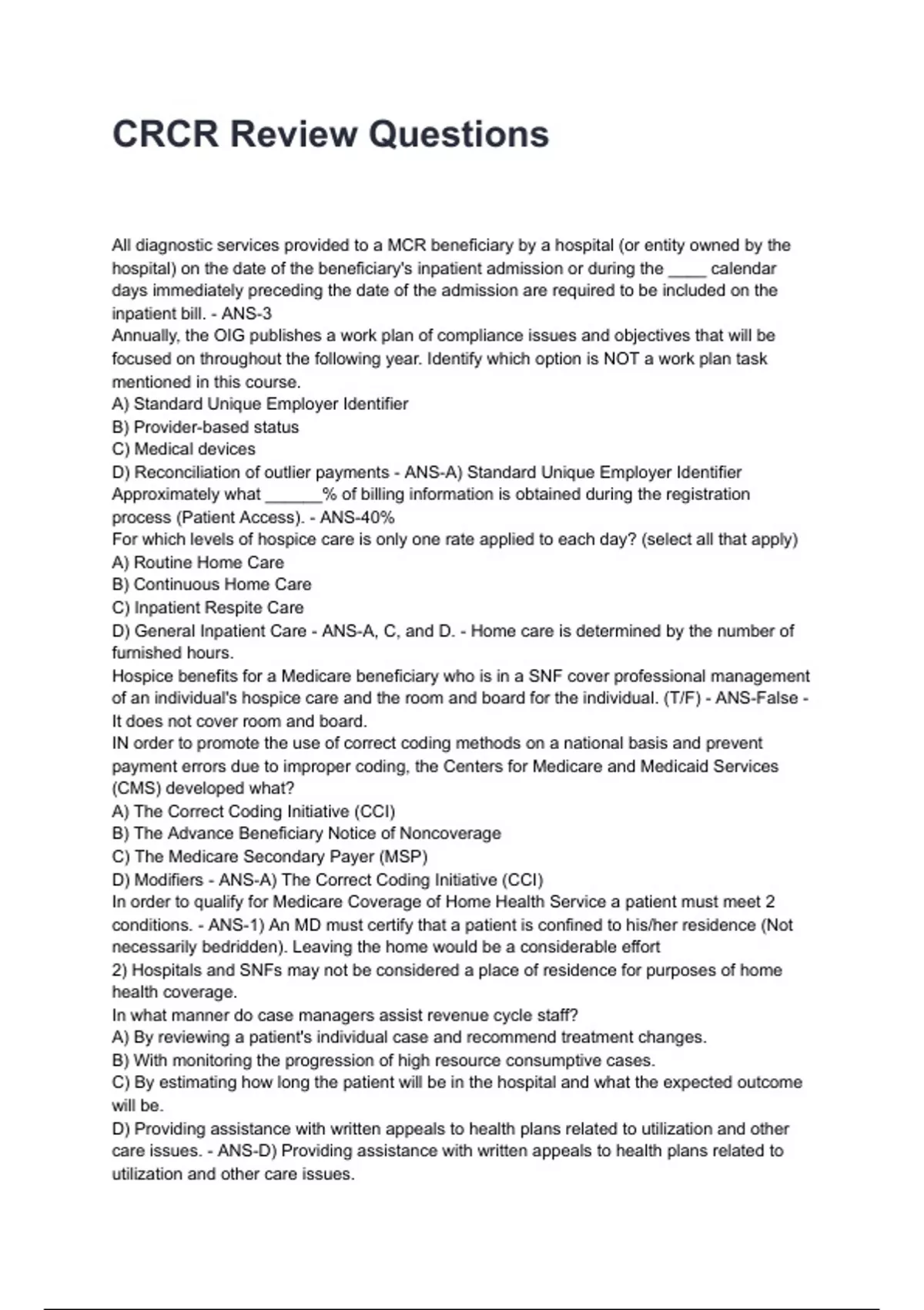D) Modifiers - ANS-A) The Correct Coding Initiative (CCI)