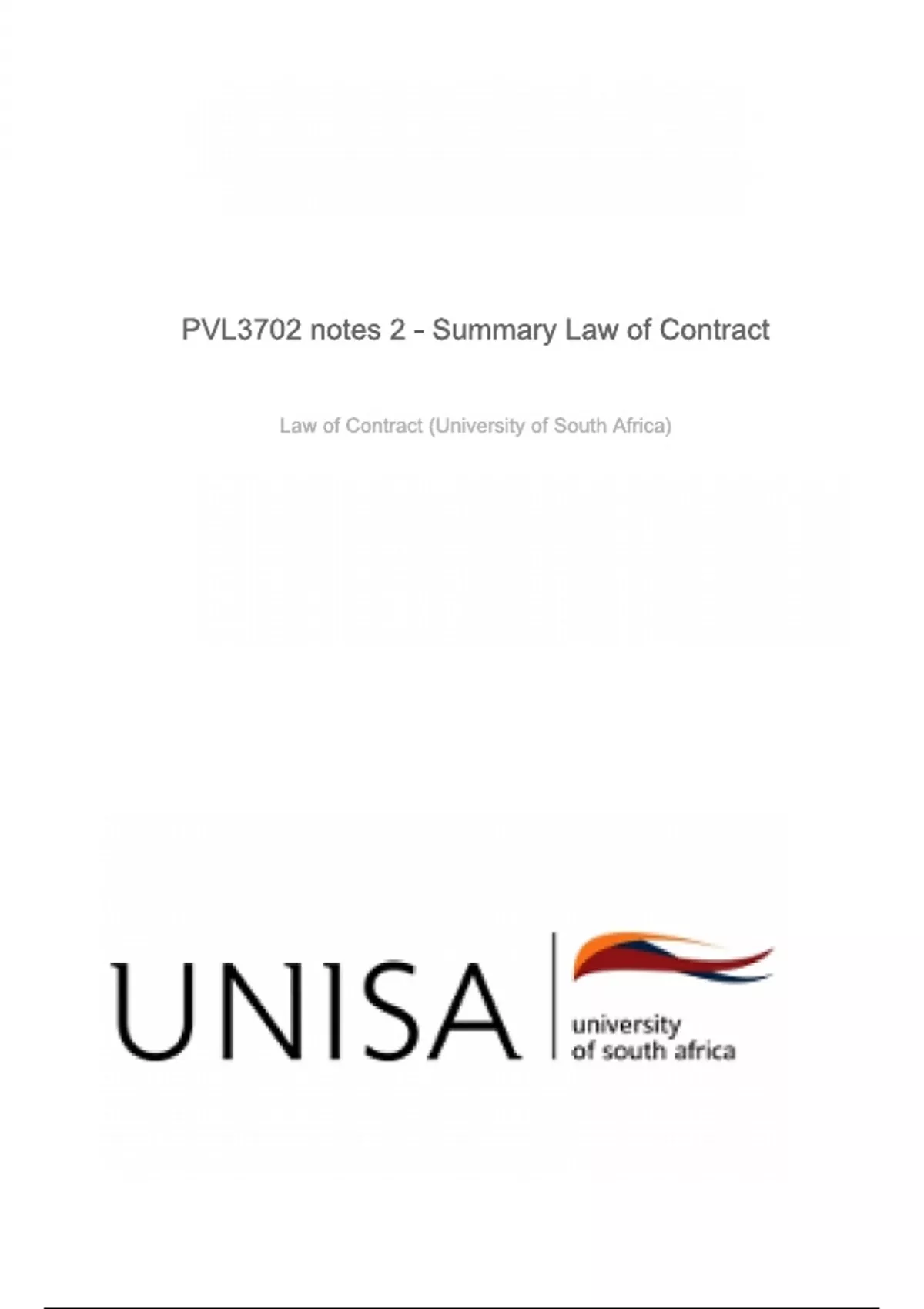 PVL3702 notes 2 - Summary Law of Contract questions and answers
