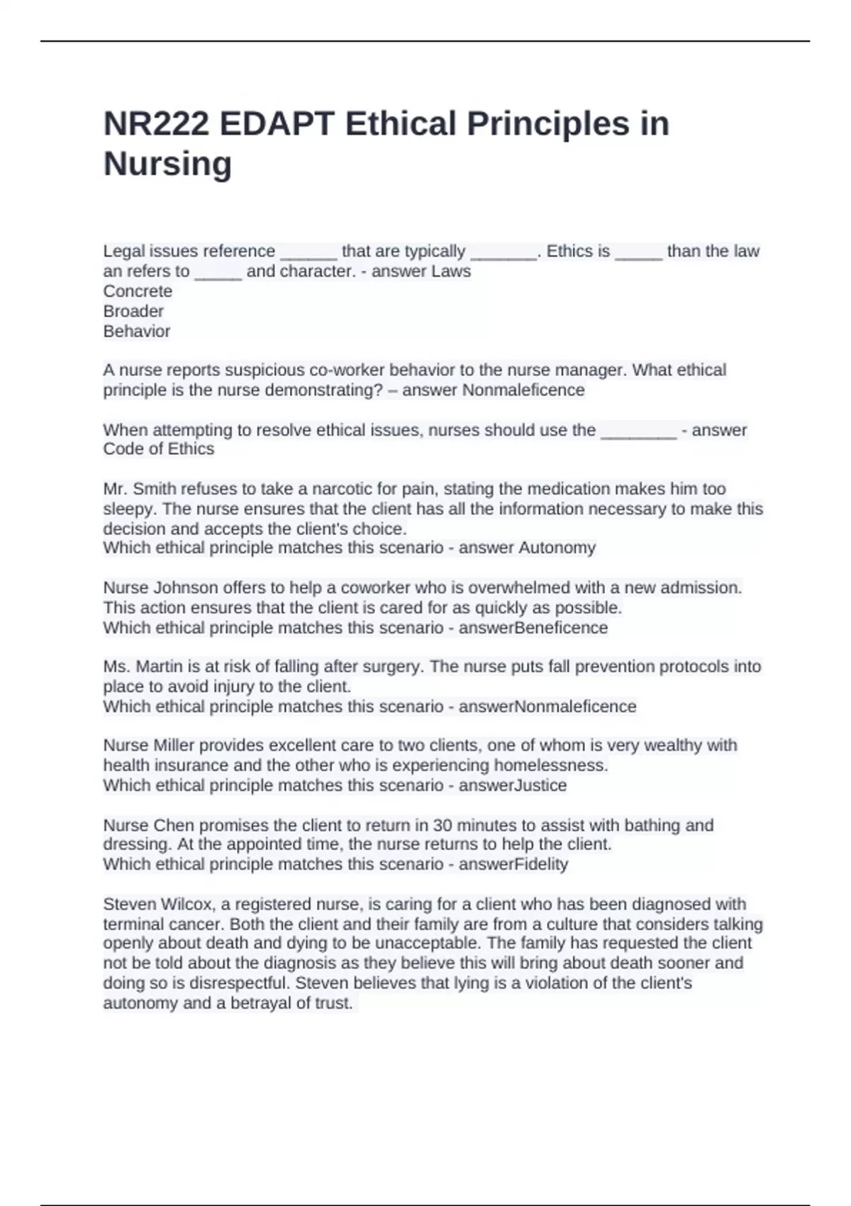 principle is the nurse demonstrating? – answer Nonmaleficence