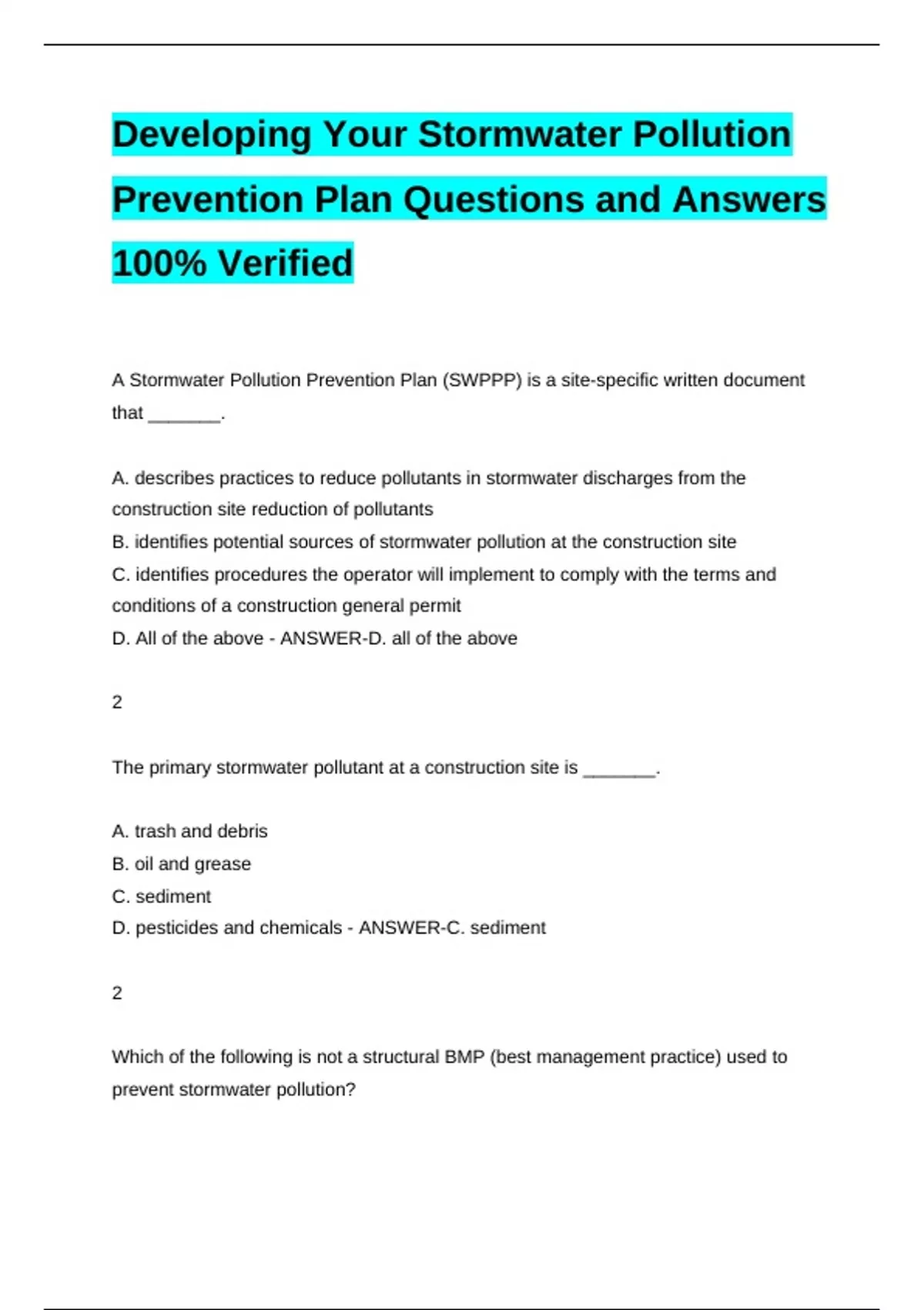 A Stormwater Pollution Prevention Plan (SWPPP) is a site-specific written document