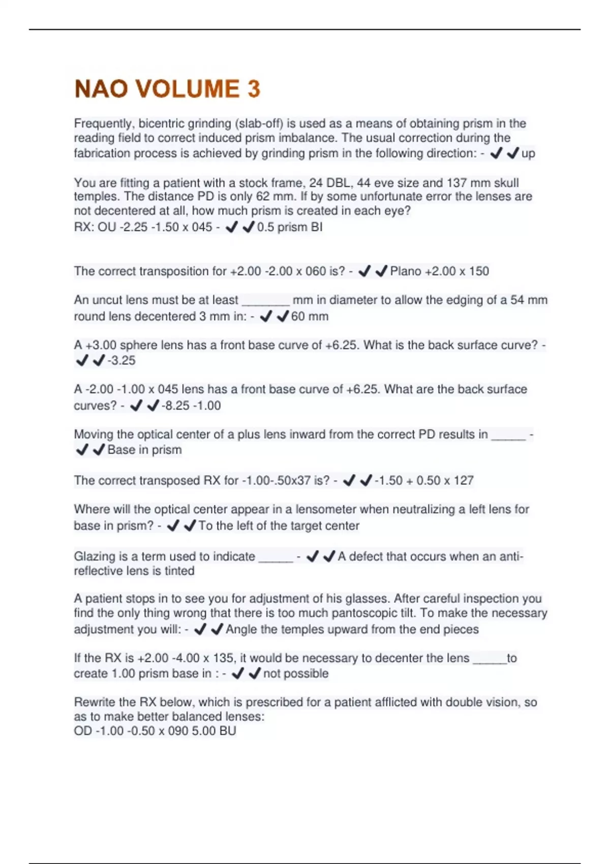 The correct transposed RX for -1.00-.50x37 is? - ✔️✔️-1.50 + 0.50 x 127