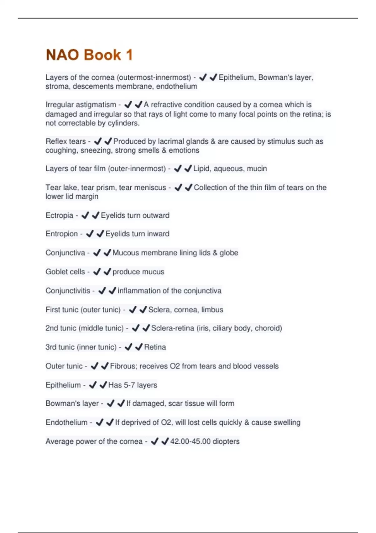 Layers of tear film (outer-innermost) - ✔️✔️Lipid, aqueous, mucin