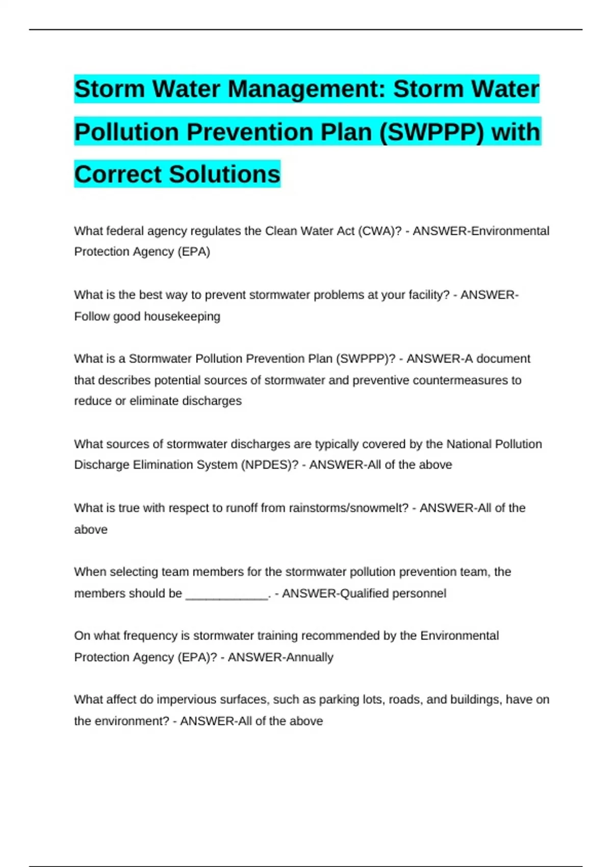 What is a Stormwater Pollution Prevention Plan (SWPPP)? - ANSWER-A document