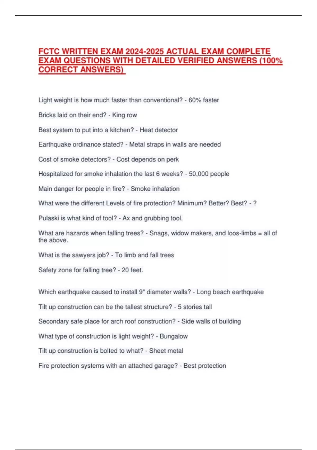 FCTC WRITTEN EXAM 2024-2025 ACTUAL EXAM COMPLETE